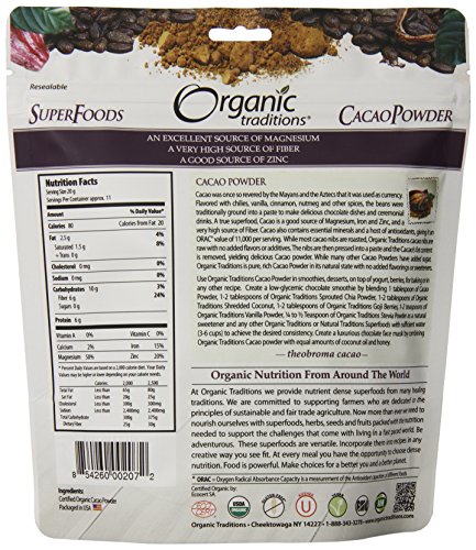 Organic Traditions Organic Powder, Cacao, 8 Ounce