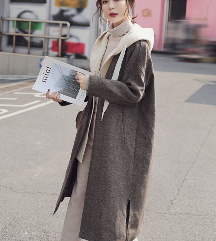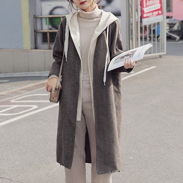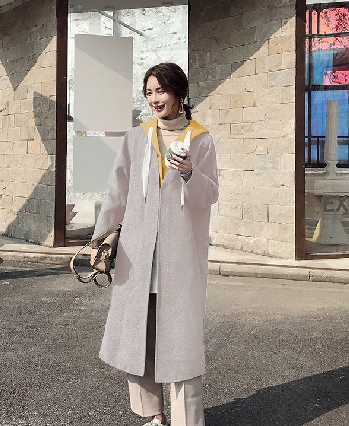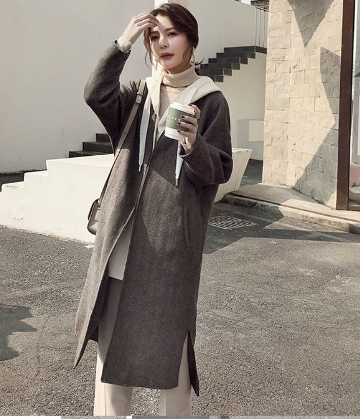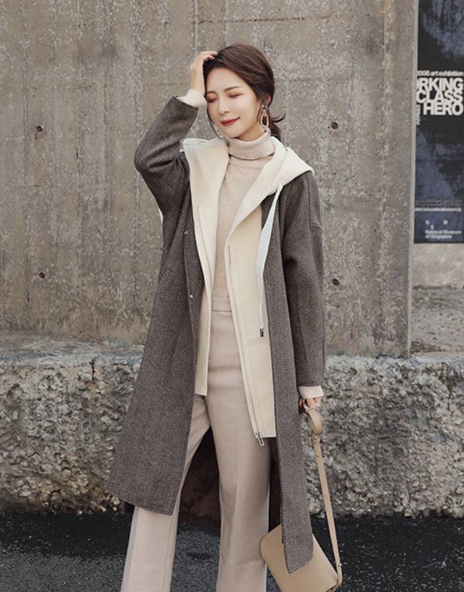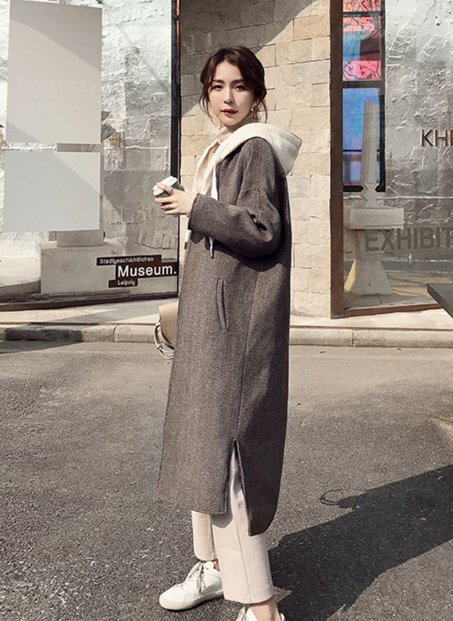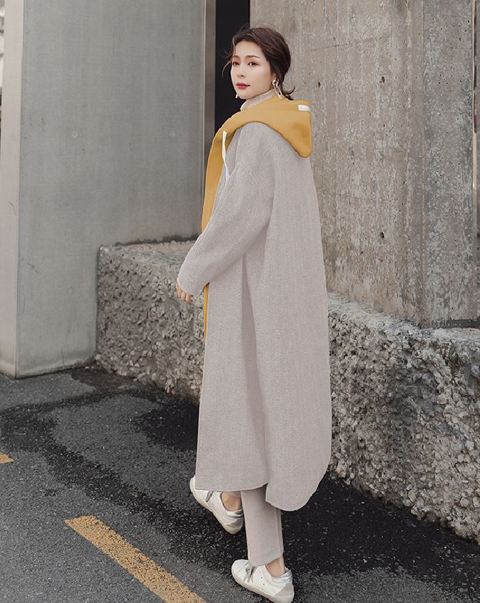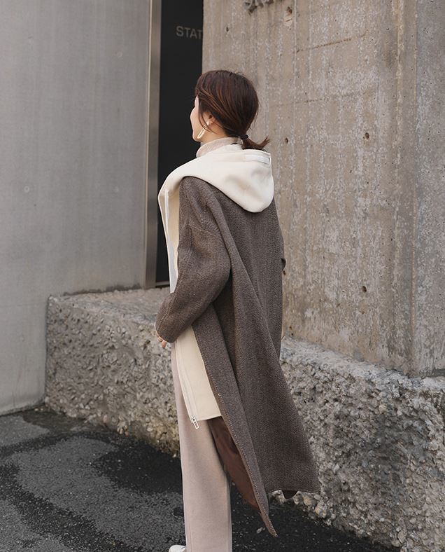 重ね着風のデザインが可愛いシンプルデザインのロング丈アウター♪