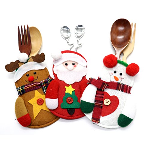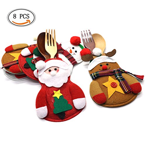 IDS Christmas Cutlery Bag, Kitchen Silverware Holders Pockets Suit, Bags Knifes Forks Flatware Pockets Holder for Christmas Party Decoration, 8 Pcs
