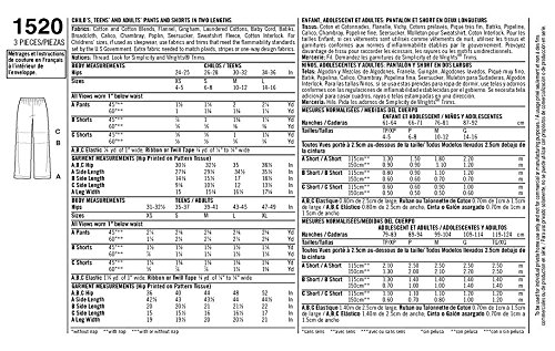 Simplicity 1520 Child's, Teens' and Adults' Pants and Shorts A (X-Small-Large/X-Small-X-Large)