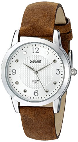 August Steiner Women's AS8198BR Silver Quartz Watch with White Dial and Brown Suede Leather Strap