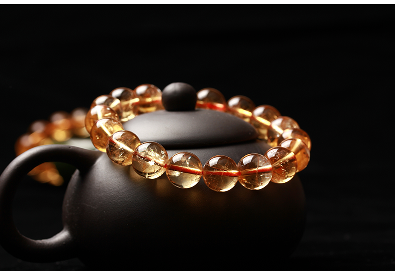 Iswin正品 天然巴西黄水晶手链 橙黄男女款 带鉴定证书深色款手串