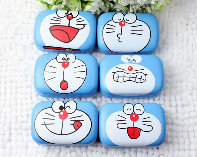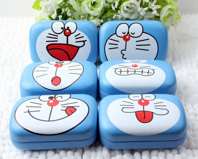 LIUSVENTINA 귀여운 도라에몽 식 가죽 상자 6 유형 콘택트 렌즈 케이스 렌즈 컨테이너