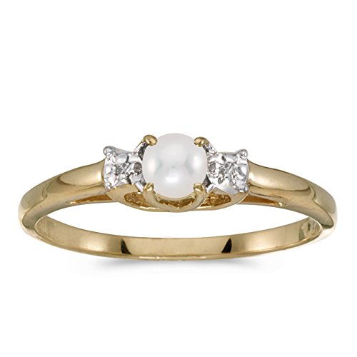 -. Title : 10k Yellow Gold Pearl And Diamond Ring