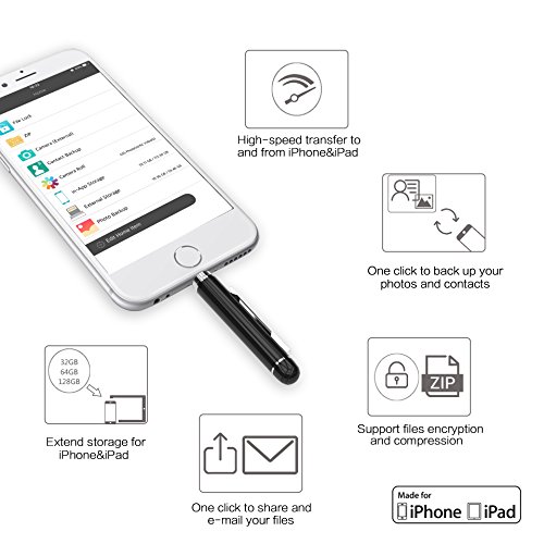 Extend Memory &Versatile APP. Working with the free app ‘Pendisk’ which download on the App Store to free up the storage for your iPhone and manage the important data. The app supports shooting picture, video and save directly to flash drive, photos and contacts backup, files encryption and compress and more…