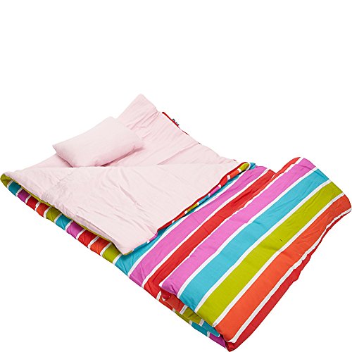 Studio : Wildkin Publisher : Wildkin Product Description Your little one will snuggle up and sleep soundly in this cozy sleeping bag by Wildkin. This sweet sleeping bag features thick bands of bright colors in a horizontal striped pattern for eye-catching style. Great for sleepovers and living room camp-sites, this sleeping bag keeps your child warm, happy and safe from boogie-monsters! 0