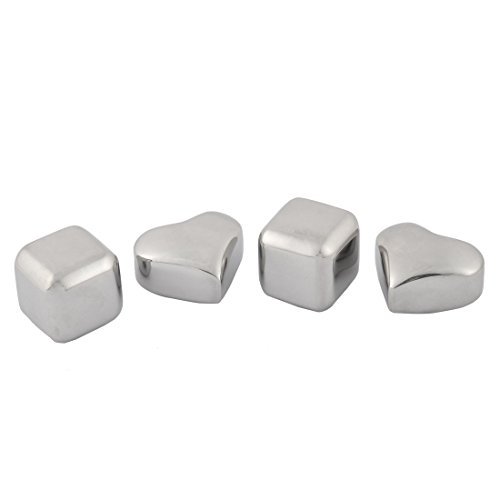 DealMux스테인레스 스틸 하트 구상 소다 쥬스 아이스큐브4 하나의 실버 톤에
