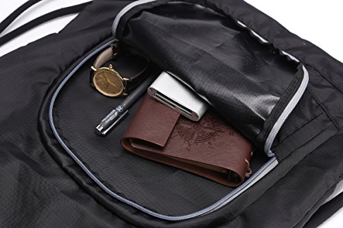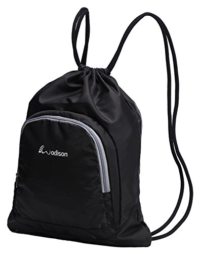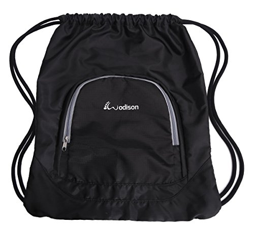 Studio : MaxFly Publisher : MaxFly Product Description WODISON sport sackpack is made of high quality nylon, lightweight waterproof and durable. Soft cartoon shoulder straps help to relieve your shoulder stress, even though carry a heavy weight. A large zipper front pocket design for the sundries, like your pens wristband etc. And a small pocket in the main compartment, you can put your phone keys and wallet in it. Main compartment fits a basketball, you can also put a suit in it, perfect for gym. 0
