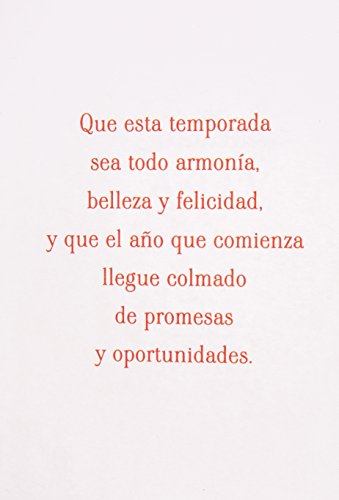 Que esta temporada sea todo armonía, belleza y felicidad, y que el año que comienza llegue colmado de promesas y oportunidades. (May this season be one of harmony, beauty, and joy, and may the year about to start bring nothing but promise and opportunity.)