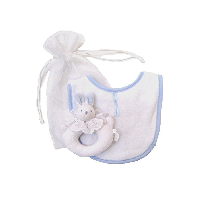원본상품명: プチボヌ?ル バニ?シリ?ズ ポ?チ入りビブとラトルのベビ?ギフトセット ブル?