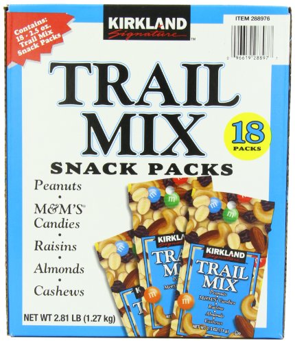 Kirkland Signature Trail Mix Snack Packs, Peanuts, M&M's Candies, Raisins, Almonds, Cashews, 2.5 oz, 18 ct