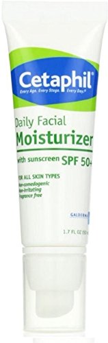 Cetaphil UVA/UVB Defense Spf 50 Facial Moisturizer specifically formulated as a facial moisturizer provides broad spectrum UV protection with an optimum blend of five filters. The moisturizing formula hydrates the skin for 8 hours and absorbs quickly. Micronized titanium dioxide leaves no filmy white residue. Non-greasy, lightweight, fragrance-free, non-irritating, and non-comedogenic, this moisturizing product is ideal for daily facial use.Feature