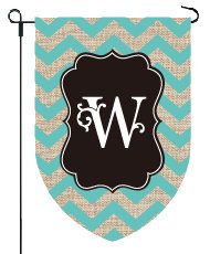 - Burlap and Turquoise Chevron style with Monogrammed letter. Garden flag monogram.