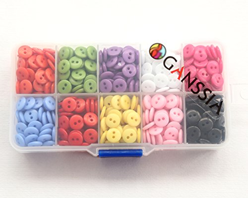 GANSSIA 3/8'' (9mm) Small size Sewing Flatback Resin Buttons 10 Colors Multi-Colored Pack of 750 With Box