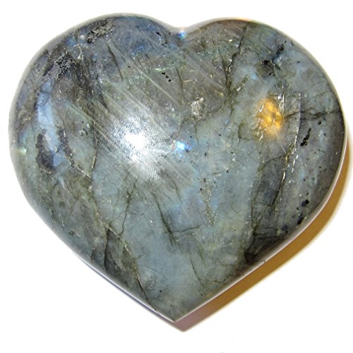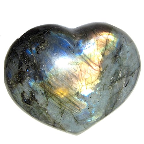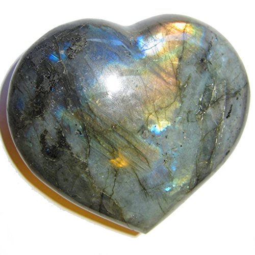 Your heart is made from beautiful and natural rainbow labradorite. This magical gemstone is a deep silvery color with intense rainbows that flash in the light. It is polished to a shine, yet retains lots of natural lines and rugged features. Receive this one of a kind beauty when you order from Satin Crystals.