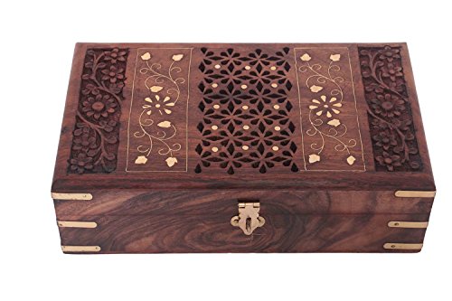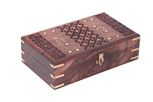 -. Binding : Kitchen -. Brand : PMK -. Color : Brown -. Department : womens -. EAN : 0713807523633 -. Feature : The box comes with a velvet inner lining and a brass latch to keep the contents scratches free and secure. / Crafted using the finest richly hued Sheesham and further adorned with an exquiste Net and Inlay Work. / Store your valuables like personal jewelry or family heirlooms and add a touch of class to your dressing table. / Dimensions: Length - 10 inches; Width - 6 inches; Height - 2.5 inches / Handmade by skilled artisans from Saharanpur - India's largest hub for high quality wooden handicrafts. -. IsAutographed : 0 -. Label : PMK -. Manufacturer : PMK -. MPN : B019W5BDYU -. PartNumber : B019W5BDYU -. ProductGroup : Home -. ProductTypeName : HOME -. Publisher : PMK -. Size : 10X6 -. Studio : PMK -. Title : PMK Wooden Jewelry Box,Net Design with Inlay work Vintage Box, Used for Gift to loved ones -. UPC : 713807523633