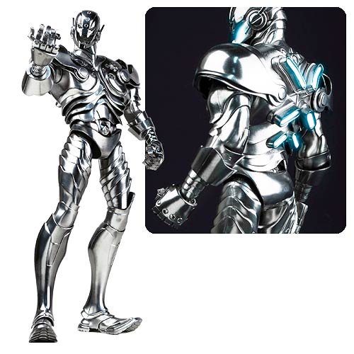 -. Feature : Ultron, the sentient A.I. created by Hank Pym, notoriously rebelled against his creator, causing havoc the world over time and time again. / Designer Ashley Wood upgrades the classic Marvel villain with a fresh look featuring plated armor and illuminated details. / Featuring classic chrome-like coloring, Ultron stands approximately 13-inches tall with a fully articulated body. / LED lights illuminate in his eyes, mouth, and chest for a truly nefarious appearance! / The Marvel Classic Ultron 1:6 Scale Action Figure requires 6x 'AG1' button cell batteries (not included). Ages 15 and up.