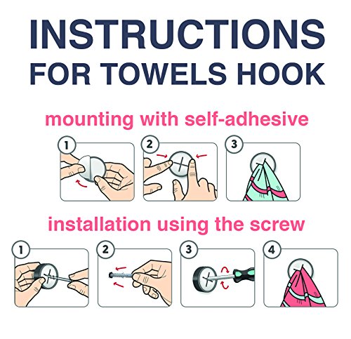 INSTALLS IN A BREEZE – Install like a pro using the self adhesive tape attached at the back of each Bath towel hook or use the included screws & dowels to fix them – both hold the hook firmly in position & you could choose either method that best meets your requirements!