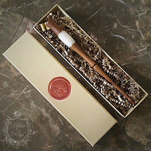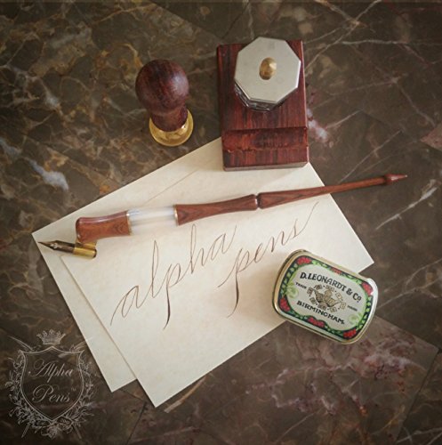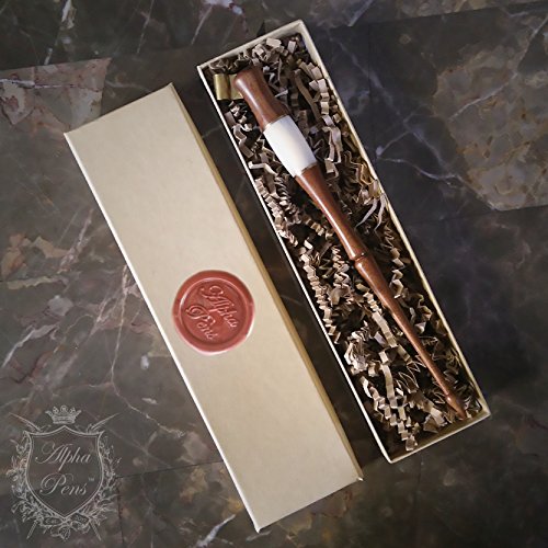 Wooden Calligraphy Oblique Nib Pen Holder with white horn, gold lining, extra comfortable grip, multi-fit brass flange, and free gift box Dip Pen by Alpha Pens (Wood and White Horn)