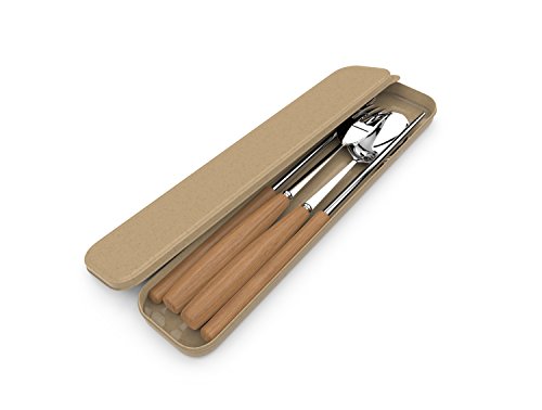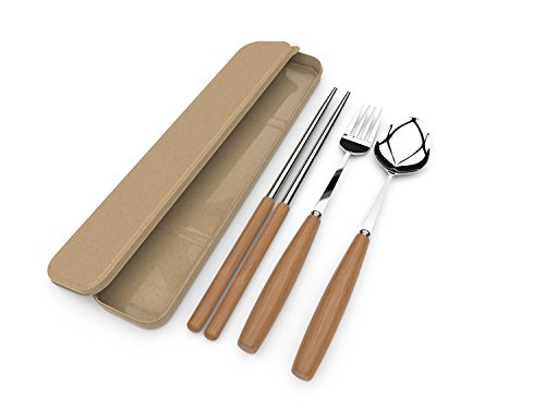 Stainless Steel Beech Wood Handle Flatware Utensil Travel Set | Fork, Spoon, Chopsticks with Travel Case for Storage by BVLe
