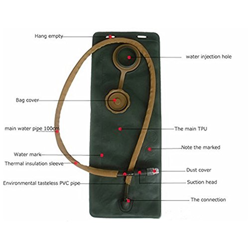 -. Feature : [Two Layers Cargo Design] : one for hydration bladder, and the other for extra carrying purpose.3L hydration water reservoir is installed in the backpack. / [Waterproof Durable Material] : Constructed by waterproof 420D high density Nylon material,resistant to tears and abrasion, very durable. / [Switch ON / OFF Bite Valve]: Large filling port with secure seal. Bite valve design, convenient for switch on/off the flow of water.Equipped with a tube with a bite valve to drink, so you don't need to stop and hold it to drink. / [Humanized Design] : Slender and portable design with middle handle strap, adjustable webbing chest strap and shoulder straps, suitable for heavy carrying. / [Adjustable Shoulder Strap/Chest Belt] : With hand carry strap and adjustable shoulder strap,so you can adjust it to the most comfortable position,suitable for heavy carrying and long time exercise,walking.