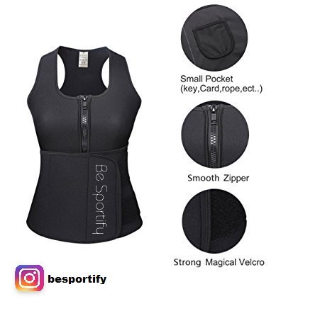 -. Binding : Apparel -. Brand : Be Sportify -. Department : womens -. Feature : 👙 SHED THE EXTRA POUNDS: The sauna vest works wonders as far as the weight loss is concerned. You can wear it while working out on daily basis to help you burn the fats more effectively and shed those extra pounds to look slim and in shape in a shorter time. / ⭐ PREMIUM MATERIAL HIGH PERFORMANCE SHAPER VEST: Be Sportify Sauna Vest is made from the high-quality neoprene which is lightweight and comfortable and helps you with its high performance to get in shape by burning the fats in lesser time. The flexible fit makes it the ideal workout gear which enables you to reach your weight loss goals efficiently. / 💻 GET YOUR POSTURE RIGHT: Another great feature of the amazing Sauna Vest is that it helps to correct your posture while eliminating backache effectively. It helps you in keeping the back in a straight posture to avoid as it provides constant abdominal and spinal compression. The tight grip of a neoprene forces you to maintain a proper posture and prevents damage to the spine. / 💧 DETOXIFY YOUR BODY: The Sauna vest when worn during workouts make you sweat ad in this way helps to detoxify your body ridding it of all the chemicals and toxins. In other words, it improves the overall health by improving the circulation of blood and making your skin and hair look great. / 😃 USER-FRIENDLY: This amazing vest is the perfect combination of a Sports Bra + Waist Trimmer + Waist trainer. Tank zipper front style and Velcro closure ensure it to be perfectly user-friendly. It has a removable top, so you don´t have to worry it will not restrain you in normal movements. Interior pocket for iPhone, mp3, android phone makes your workout more pleasant. The item is hands washable. -. ProductGroup : Apparel -. ProductTypeName : OUTERWEAR -. Title : Sauna Vest by Be Sportify – Get in Shape with the Neoprene Slimmer - Women’s Adjustable Waist Trimmer Belt – Available in 6 sizes