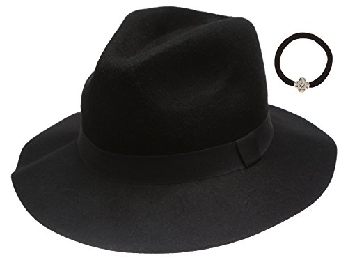 -. Title : Women's 100% Wool Felt Cloche Short Brim Floppy Fedora Hat with Scrunchy