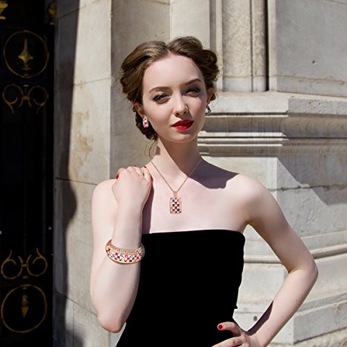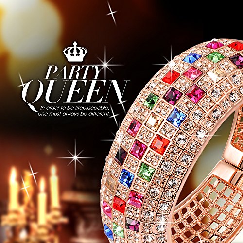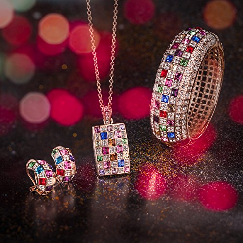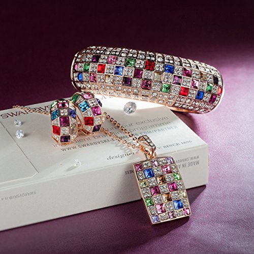 -. Title : "Party Queen" Rainbow Multicolor SWAROVSKI ELEMENTS Crystals Necklace Pendant Cuff Bangle Bracelet Earrings Rose Gold Set Fashion Statement Costume Jewelry Sets Luxury Jewel Box Gift Packing - Three Layers Real 18K Rose Gold Vacuum Plating, Not Allergic. Swarovski's Standards, The Highest Quality for Fashion Jewelry. Environmental Friendly, 30-day Money Back Promise.