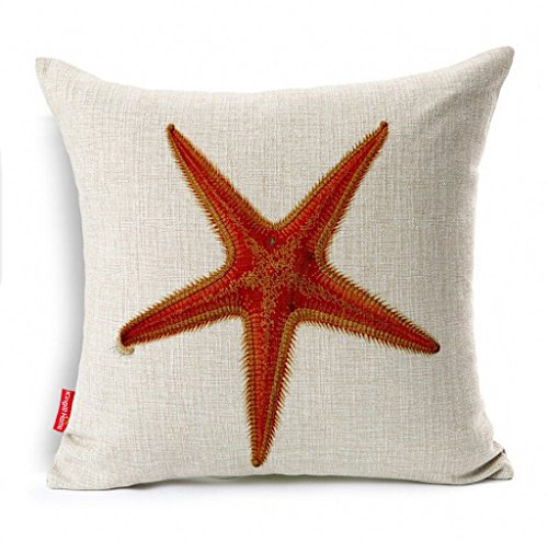 Kingla Home® Ocean Park Theme - Red Starfish 18 X 18 Inch Cotton Linen Square Decorative Throw Pillow Covers Zippered Cushion Cover for Sofa