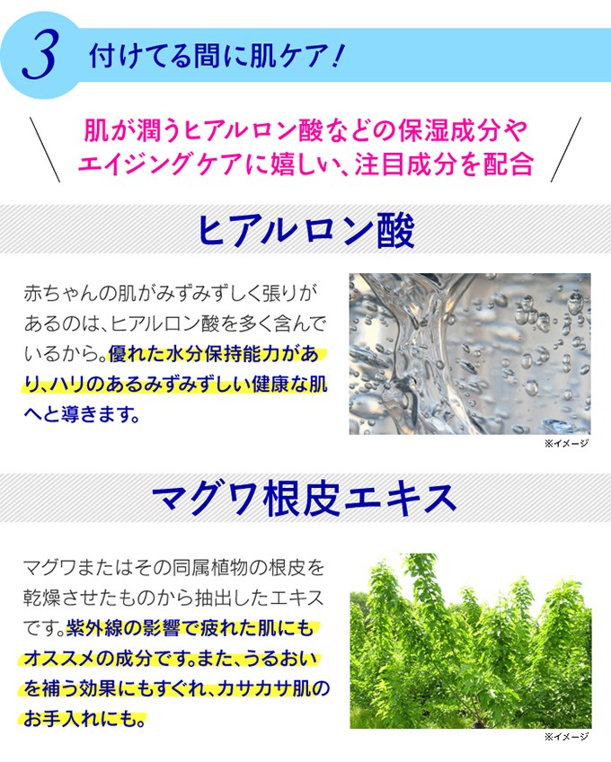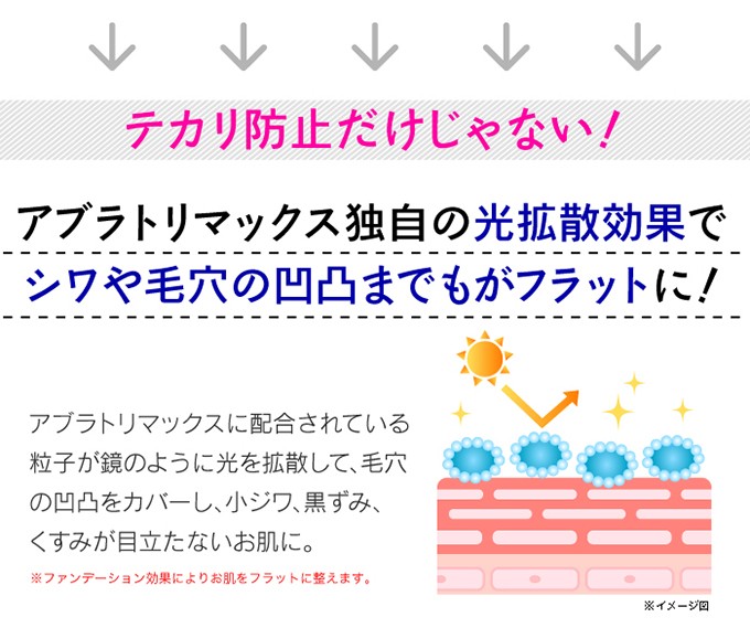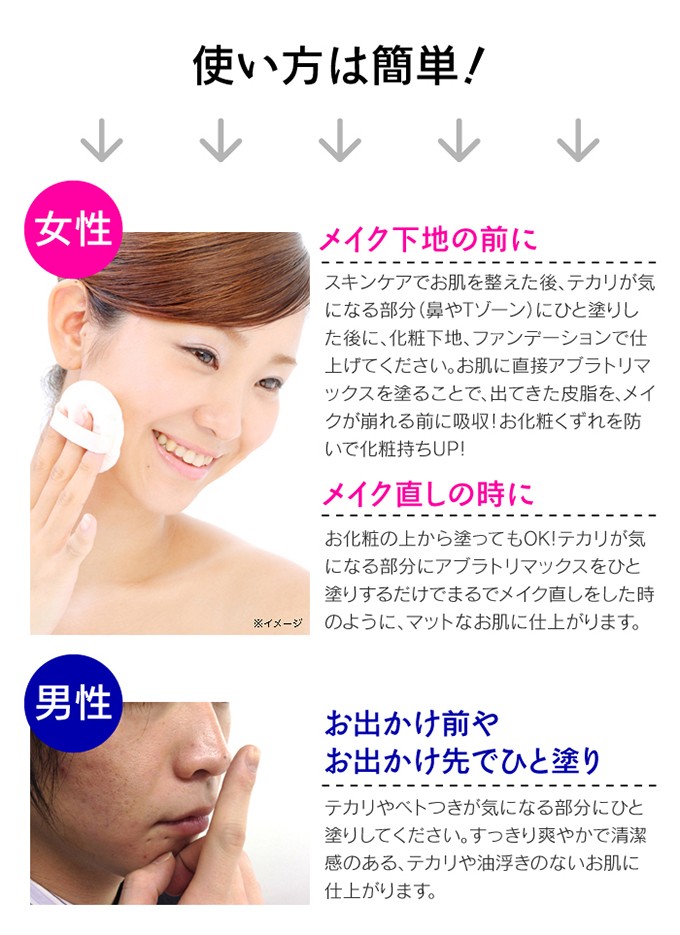 | ご使用方法 | 容器をよく振ってからご使用ください。 指先に適量(ワンプッシュ)とり、テカリの気になる部分に軽くひと塗りし、やさしく肌になじませてください。 |