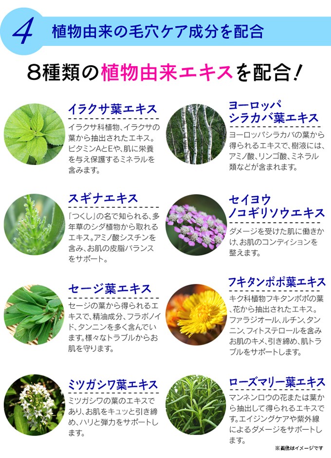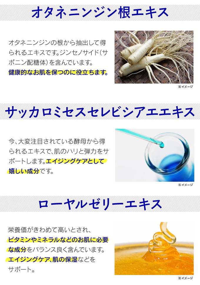 | 原材料名 | シクロペンタシロキサン、ジメチコン、(ジメチコン/ビニルジメチコン)クロスポリマー、(ビニルジメチコン/メチコンシルセスキオキサン)クロスポリマー、ジメチコン/(PEG-10/15))クロスポリマー、PEG-10ジメチコン、ヒアルロン酸、ビルベリー葉エキス、マグワ根皮エキス、オタネニンジン根エキス、サッカロミセスセレビシアエエキス、ローヤルゼリーエキス、ローズマリー葉エキス、イラクサ葉エキス、セージ葉エキス、ヨーロッパシラカバ葉エキス、スギナエキス、セイヨウノコギリソウエキス、フキタンポポ葉エキス、ミツガシワ葉エキス、カプリリルグリコール、エチルヘキシルグリセリン、カプリル酸グリセリル、シリカ、BG、水 |