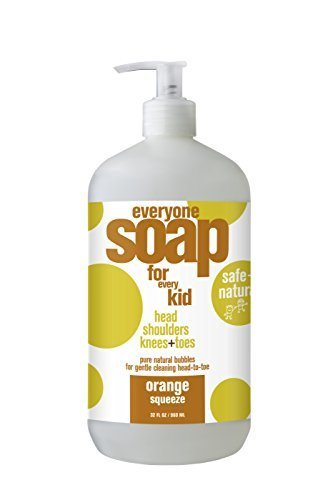 Safe + Natural Head, Shoulders, Knees + Toes Pure Natural Bubbles for Gentle Cleaning Head-to-Toe Non GMO Project Verified Certified Gluten-Free Certified B Corporation Choose Wisely! No Synthetic Fragrances, Only Pure Essential Oils 3 in One - Hair | Body | Bath Made by EO, with ingredients that are pure, natural and organic. Everyone Soap for kids gently cleanses and moisturizes from head-to-toe with a calming scent. Everyone Soap for kids is perfect for a soothing shower, a gentle shampoo and a calming bath. Suggested Use Use freely and enjoy. For a ball of a bubbly bath, remove pump and pour generously into running water. Other Ingredients Purified water, cocamidopropyl hydroxysultaine, sodium coco-sulfate, caprylyl/capryl glucoside, sodium chloride, coco-glucoside, panthenol, EO essential oil blend [citrus aurantium dulcis (orange) peel oil, apricot natural flavor, anthemis nobilis flower oil], EO organic herbal blend (organic aloe barbadensis leaf, organic chamomilla recutita (matricaria) flower extract, organic calendula officinalis flower extract and organic camelia sinensis leaf extract], citric acid, sodium phytate, phenoxyethanol, benzyl alcohol, potassium sorbate, tocopherol