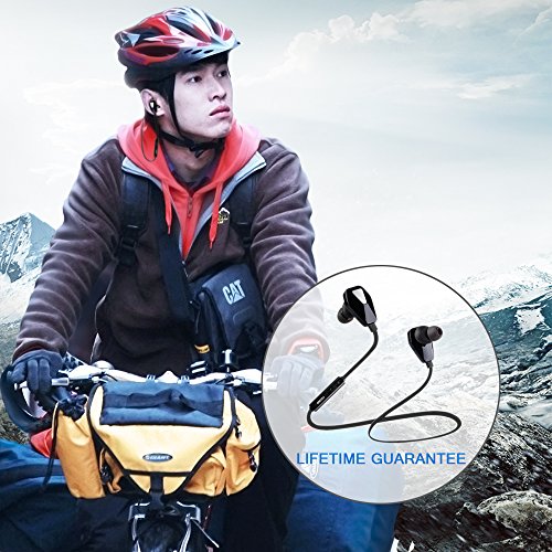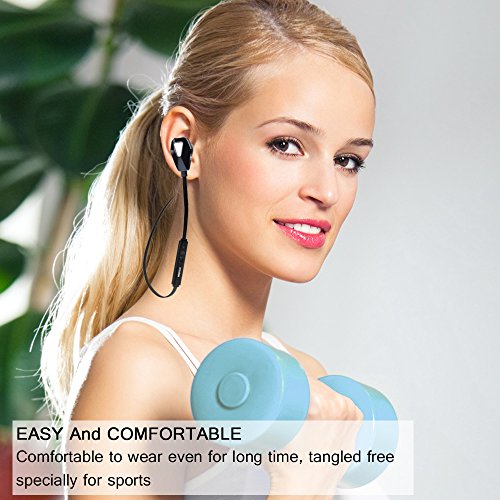 -. Feature : High Quality Guarantee: Quality stereo sound with bluetooth connection with noise reduction, makes you enjoy the music or talking when exercise or workout freely; Built-in extra-long battery up to 6 hours listening/talking, 180 hours standby when full charged. / Universal Device Compatibility: Utilizes the latest and greatest bluetooth CSR 4.1 technology, compatible with any Bluetooth-enabled iPad, iPhone, iPod Touch, Android smartphones, tablets. / Ergonomics & Elegance Design: Packaged with 2 sizes of silicone ear gels to ensure a perfect fit for your ears; Smart magnetic hold allows the user to wear the product when not in use;Hands free calling without bothering anyone else around you;Separate volume buttons provide easy access and control. / Great for Exercise: Sweat-Proof with functional user interface, earpiece design, lightweight and portable, rechargeable battery and up to 32ft rang. / What You Get: Wireless headphone, user manual, charging cable and 2 different sizes earbuds. LIFETIME WARRANTY, MONEY BACK GUARANTEE.
