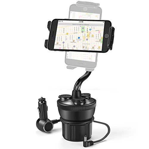 TNP Smartphone Car Mount Holder Charger Station - Universal Car Cup Holder Mount with 3 Sockets and 2 USB Charge Port 2.1A For iPhone 7, 7 Plus, 6, 6 Plus, Samsung Galaxy Android Smart Phone, Camera