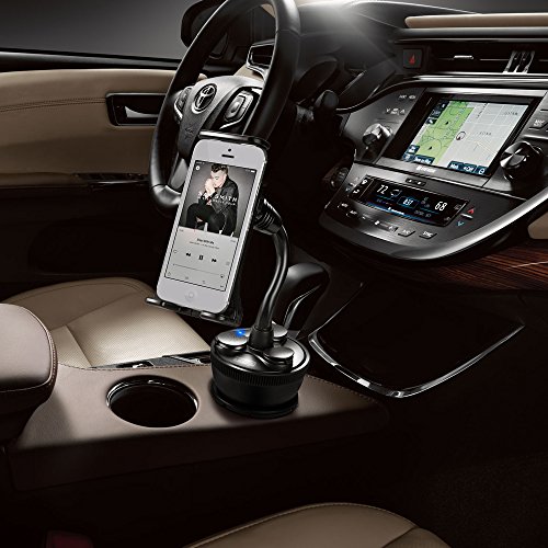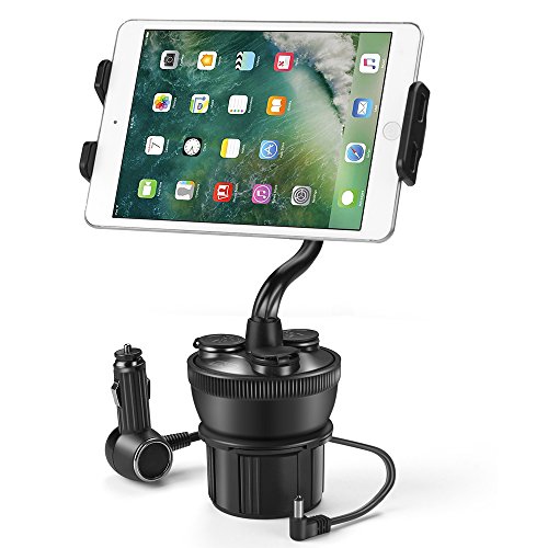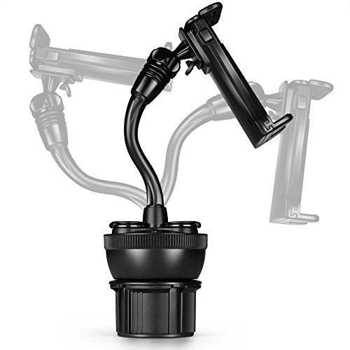 Flexible holder neck with 360 degree swivel ball head joint. Angle can be adjustable for easy viewing. Neck Length from cup mount to joint : 5.5 inch; Holder has extended arms for wider depth and longer length. Fits cup holder diameter up to: 3.75 inches. Cellphone holder width: 1.6 to 4.1 inches