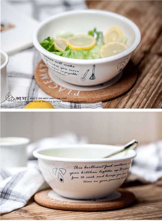 这个诗与远方款系列,图案都是非常温暖的手写信文,加上一点小绘画,很朴实复古,别有味道,跟店内之前的搪瓷收纳盒,奶锅,奶杯,是同一个系列的。这个碗的容量够大,作为沙拉碗非常合适。装一大盆粥,装一大碗饺子,一大碗面,特别适合喜欢用大碗吃东西的亲,吃起来特别的爽呢 ~