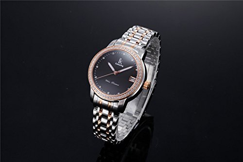 -. Feature : GuTe Picked High Quality Luxury Ladies Diamonds wristwatch / Japan Automatic Mechanical Movement. Sapphire Watch Lens / Black Pearl Dial with Luminous Hands. Date Display / 2-TONE Style Silver mixed Rose-gold Stainless Steel. 56 Swarovski Diamonds Bezel / See-through Back Case Water Resistant 10ATM