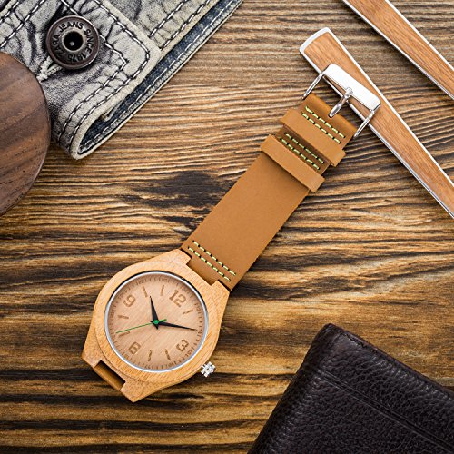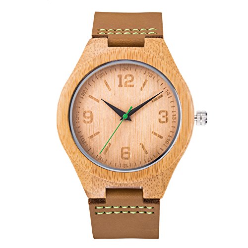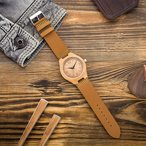 -. Title : BIOSTON Fashion Casual Dress Vintage Calf Leather Men's Bamboo Wood Watch Leather Wooden Watch
