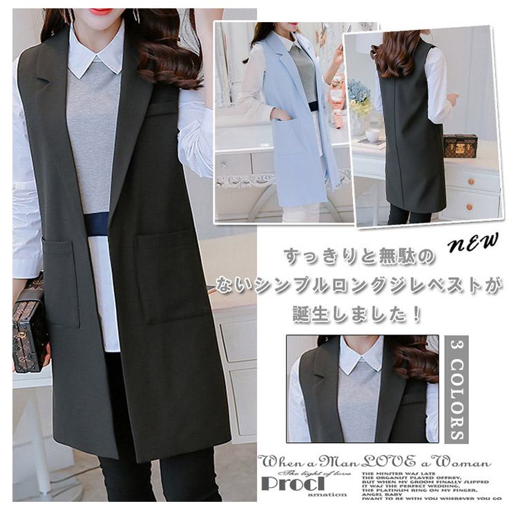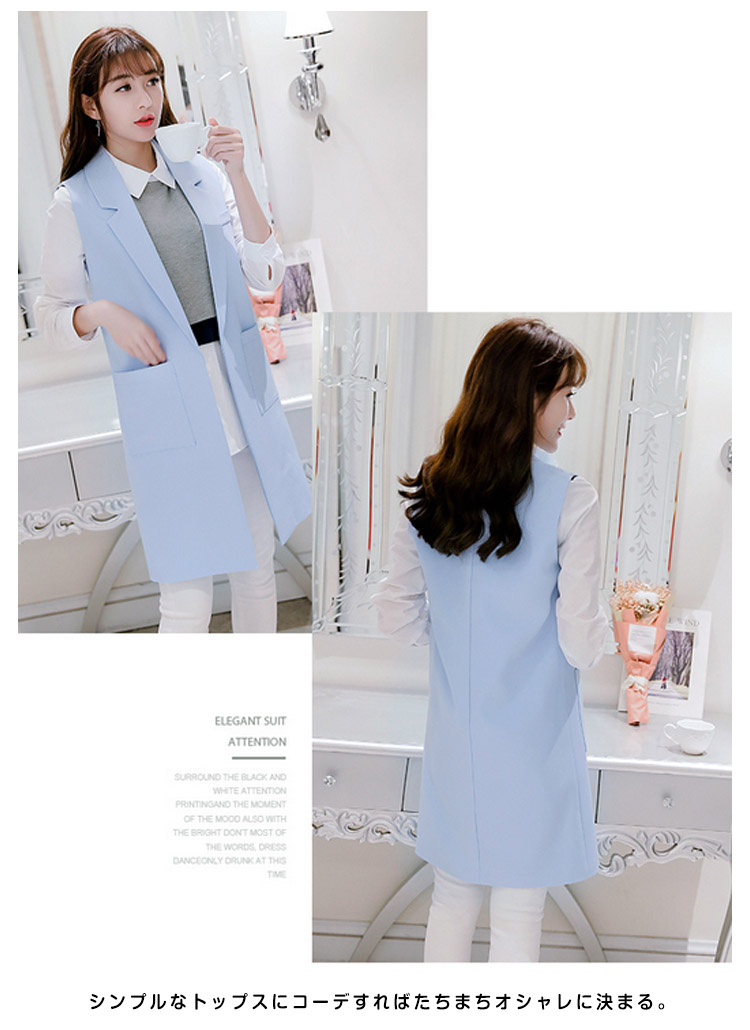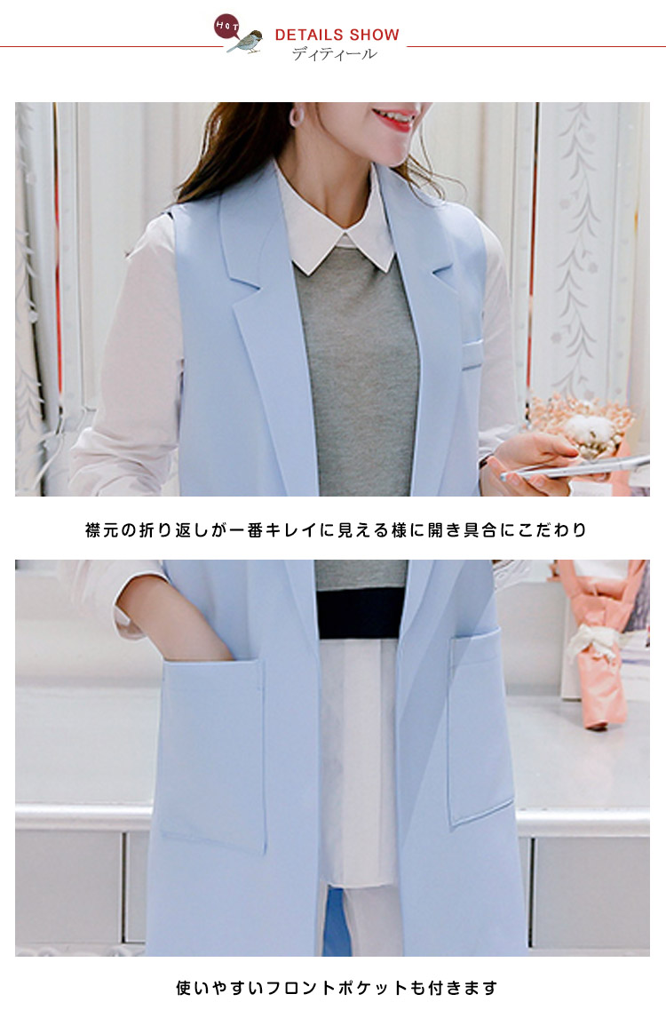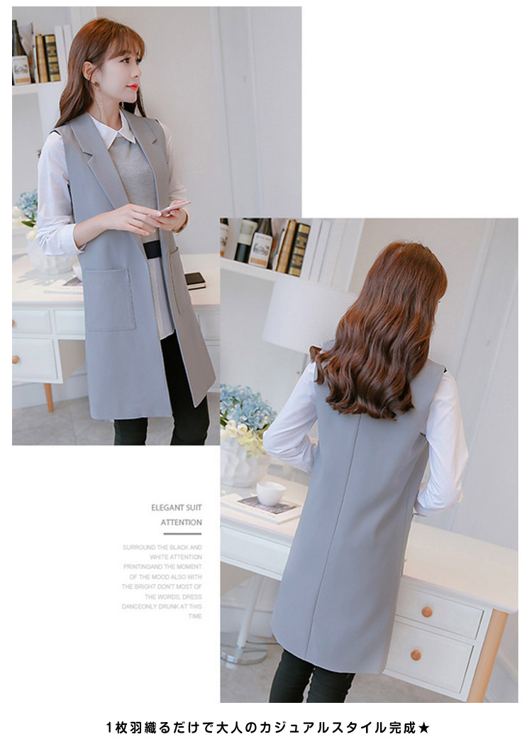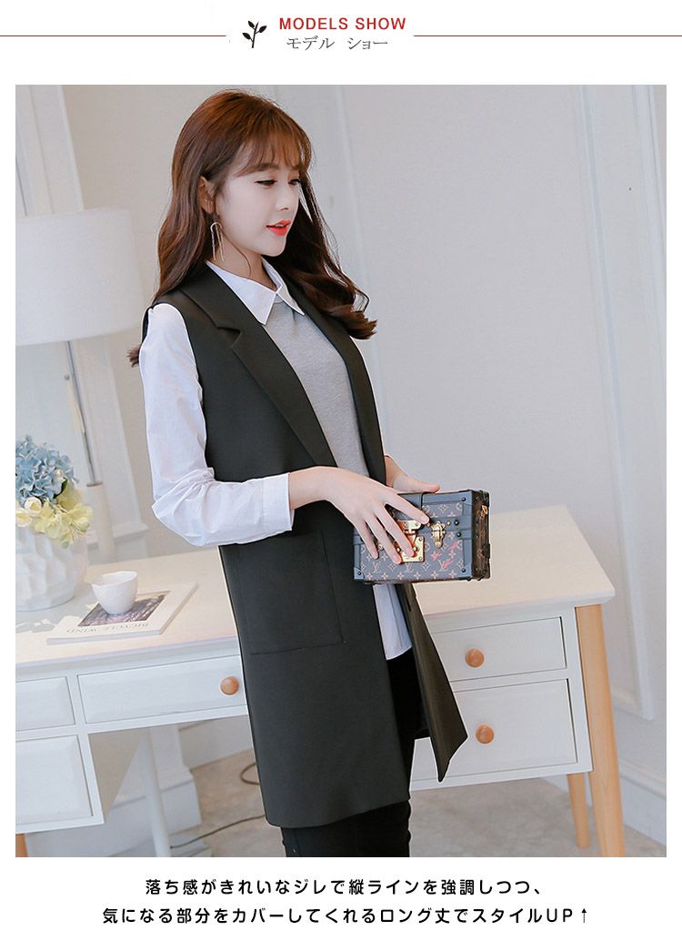 | すっきりと無駄のないシンプルロングジレベストが誕生しました!落ち感がきれいなジレで縦ラインを強調しつつ、気になる部分をカバーしてくれるロング丈でスタイルUP↑シンプルなトップスにコーデすればたちまちオシャレに決まる。1枚羽織るだけで大人のカジュアルスタイル完成★ | |