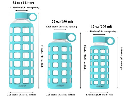 • Our high impact-resistant silicone sleeve also protects your glass water bottle better than any other. The silicone sleeve's non-slip grip and the cap's large O-ring also enable the multi-tasker in you to carry more than you thought possible with just ten fingers.