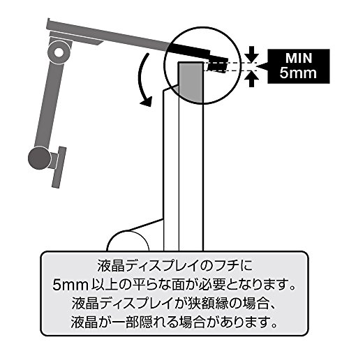 ※本製品は液晶ディスプレイのフチに引っかけて取り付けるため、フチに5mm以上の平らな面が必要となります。