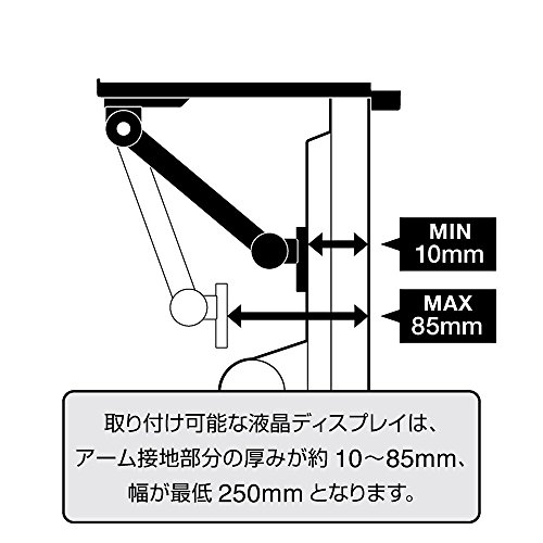 ※取り付け可能な液晶ディスプレイは、アームの設置部分の厚みが約10~85mmとなります。