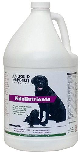 FidoNutrients from Liquid Health Pets is a high quality dog vitamin containing vitamins B12, C, E and K1 for dogs and puppies. All of Liquid Health's multivitamins use only the highest quality ingredients and are made in the USA. Contains necessary vitamins, minerals, herbs, essential fatty acids, trace minerals, amino acids and digestive enzymes, plus Ester-C and Coenzyme Q10 in a tasty meat flavor.Feature