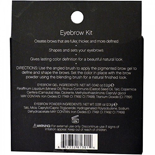 -. Binding : Misc. -. Brand : e.l.f. Cosmetics -. Feature : Create brows that are fuller, thicker, and more defined / Pigmented wax defines and shapes brows / Color complementing setting powder keeps brows looking arched and perfected / Includes 4 reusable stencils that are easy to use / Doubled sided taklon brush also included -. IsAdultProduct : 0 -. PackageQuantity : 2 -. ProductGroup : Beauty -. ProductTypeName : BEAUTY -. Title : e.l.f Studio Eyebrow Bundle: Stencil & Eyebrow Kit (Light)