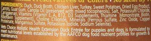 -. Feature : The sweet potatoes add an excellent source of vitamins, minerals and beta-carotene. / Dogs will enjoy and benefit from our deboned duck entree free from growth hormones, steroids, meat by-products and allergy related fillers. / No By-Products, Rendered Animal Fats, Corn, Glutens, Soy or Artificial Preservatives / No Wheat, BHT, Ethoxyquin, Added Sugar, Artificial Flavors, Colors or Dyes