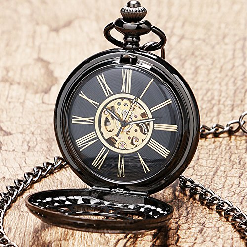 -. Title : Mens Steampunk Automatic Mechanical Skeleton Hollow Fashion Self Wind Pocket Watch Roman Numerals Chain