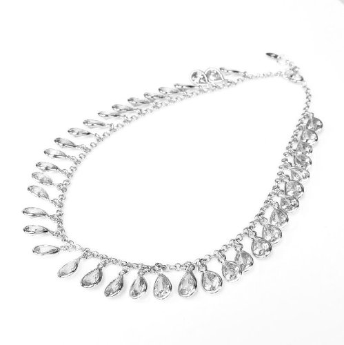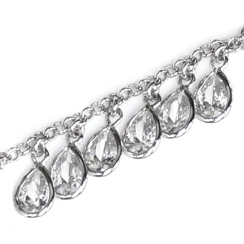 -. Title : Rhodium On .925 Sterling Silver Teardrop Clear Cz Crystal Dangle Charm Link Anchor Rolo Cable Chain Round Link Anklet Bracelet With Extender SP.R.Ing Clasp 9''