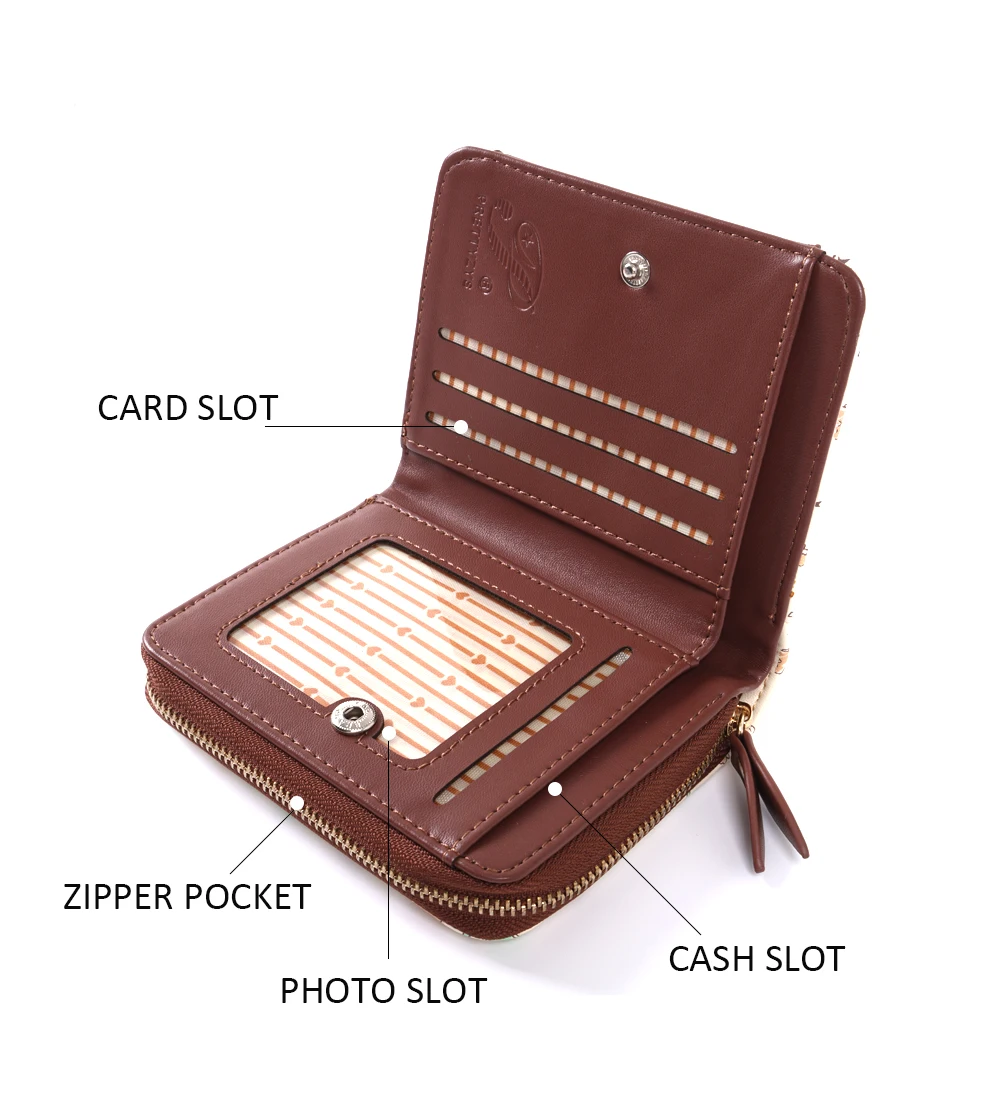 Interior:Cell Phone Pocket,Zipper Poucht,Coin Pocket,Card Holder,Photo Holder,Note Compartment