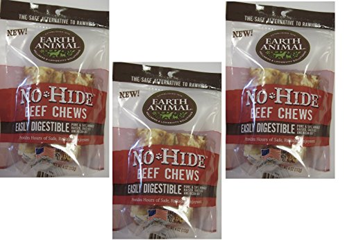 -. Feature : (3 Packages) Earth Animal No-Hide Beef Chews 4" (2 Chew Per Pack, 6 Chew Total) / Easily Digestible / Made with Real American, Humanely Raised Beef / Promotes Healthy Teeth and Gums - No Chemicals, Bleaches, Formaldehydes or Additives / Made in USA