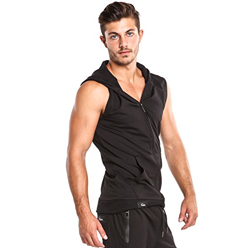 -. Title : Taddlee Hooded Tank Cotton Mens Sleeveless Zip Up Black Color Gym Active Tees